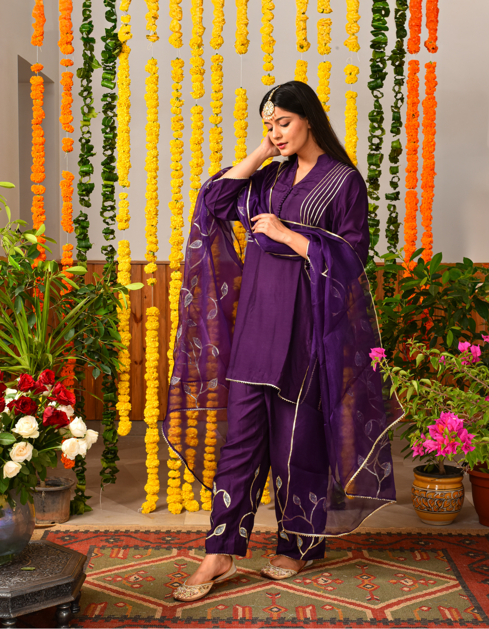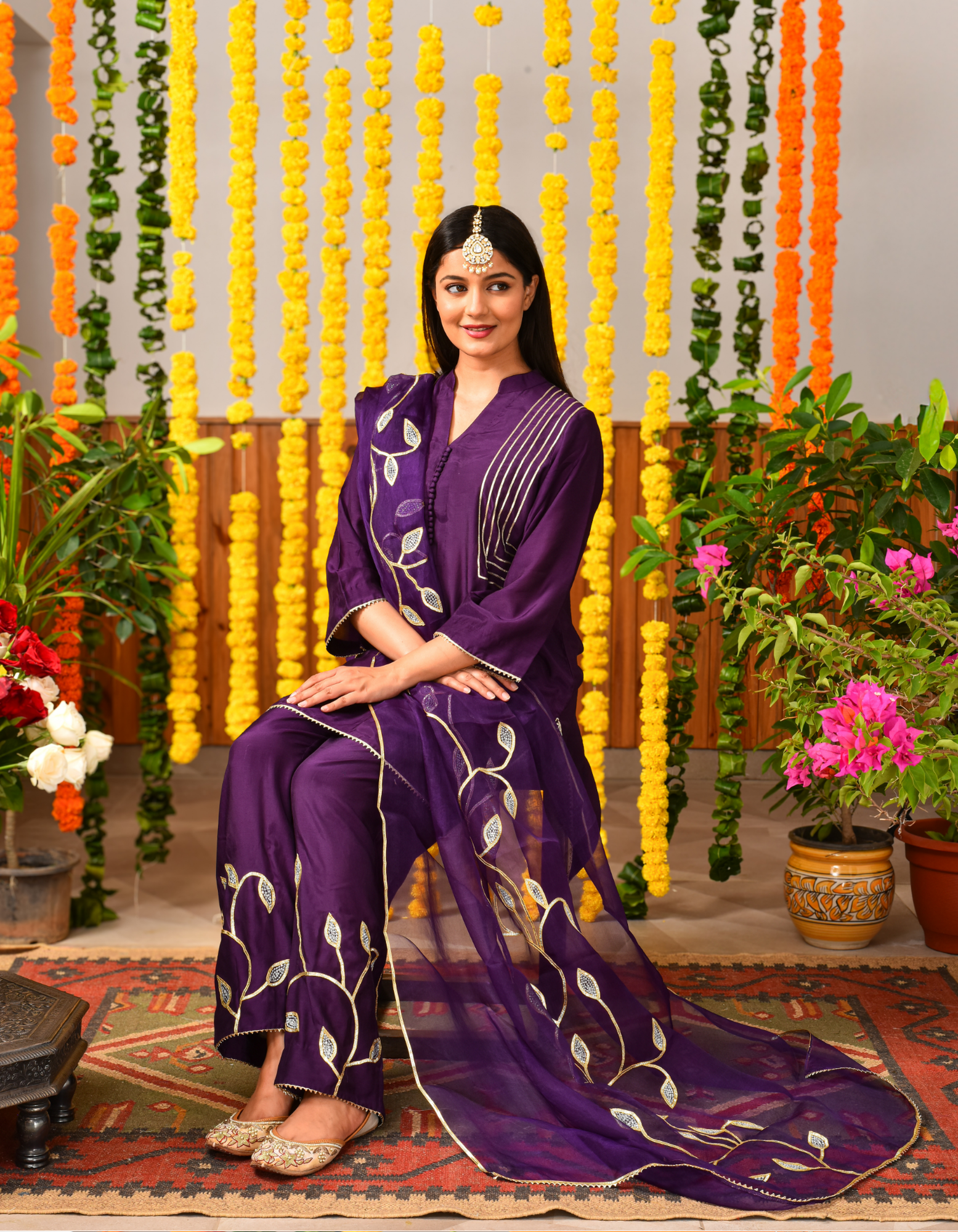 Purple Leaves Short Kurta Set