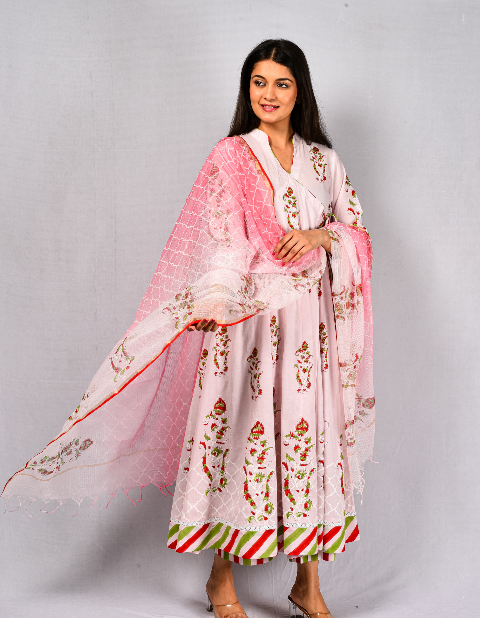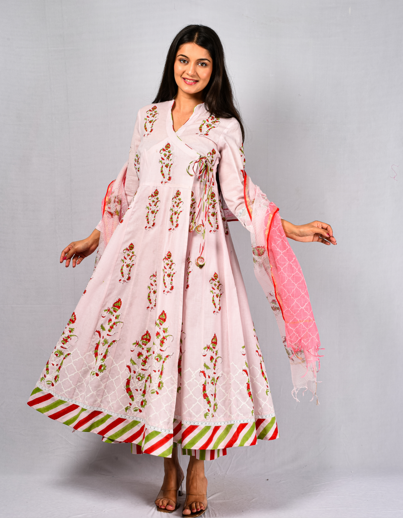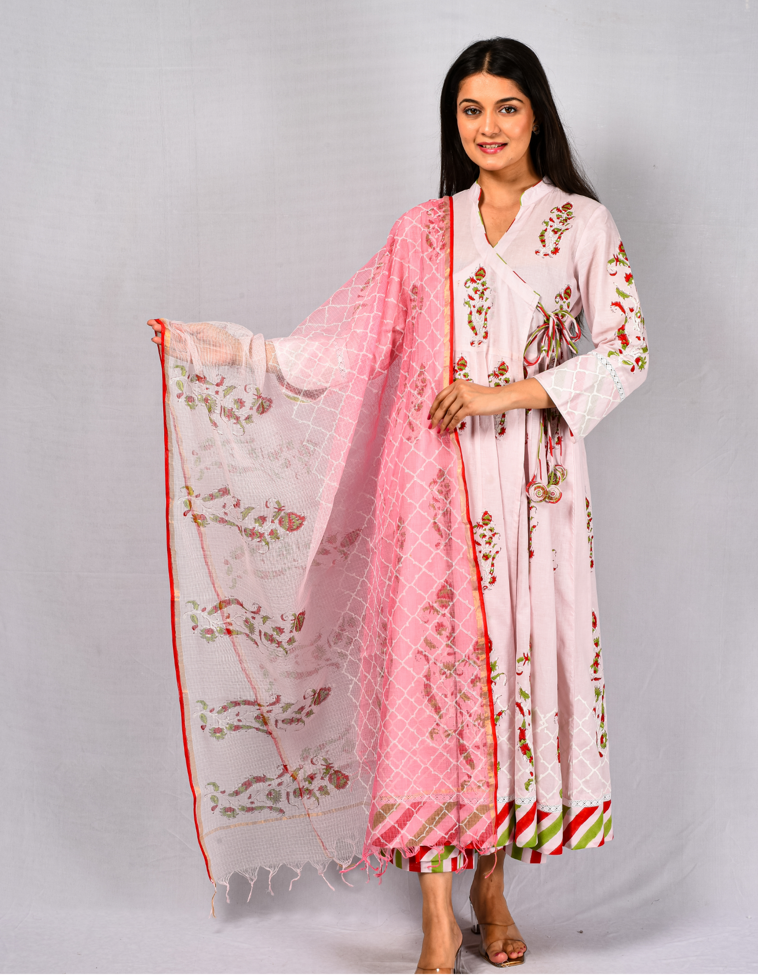Drifting between the soft elegance of pink and the quiet depth of purple, Zoya is a collection that feels like a midsummer dream. The base color, rich yet delicate, is adorned with hand-block printed motifs that add layers of artistry to every silhouette.